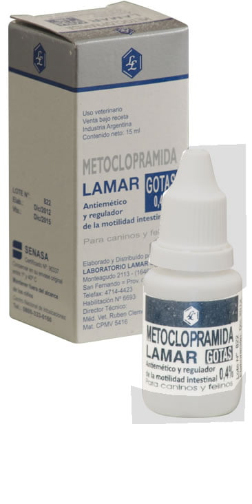 Observaciones: Contraindicado en vólvulo e intususcepción gástrica o intestinal. No asociar con anticolinérgicos que neutralizan su acción a nivel digestivo. En perros en tratamiento anticonvulsivante puede causar crisis.